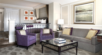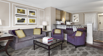 Featuring a contemporary, fresh design inspired by the traditional ornate costumes of the Venetian Carnival, this newly remodeled suite comes complete with a pillow-top king bed, a sunken living room, a complimentary guest mini-fridge and a dining table for your in-suite dining indulgences. Unwind as you relax in the all-marble expansive bathroom that features an oversized Roman tub, a separate glass-enclosed shower, a double-sink vanity along with a separate make-up mirror and vanity.