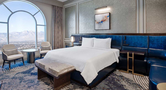 Suites feature a view of the Las Vegas Strip (facing pools) and mountain views.