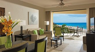 Suites feature a partial-ocean view or an ocean view. Additional amenities include a living and dining area.