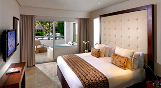 Suites feature a pool view with direct access to a pool. Additional amenities include an outdoor Jacuzzi as well as access to the Destination Inclusive program.