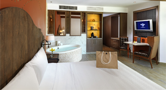Rooms are comprised of two connecting rooms, and feature a garden view or a resort view.