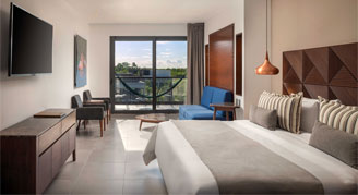 This serene, all-inclusive resort features a modern design with a focus on the the endemic mangroves and fauna that will cater to nature-lovers. Located adjacent to its neighboring El Cid Resorts, Ventus Ha' at Marina El Cid is nestled among the mangroves which allows it to offer an intimate, organic atmosphere. With a total of 299 spacious rooms and suites, this resort also offers one-, two- and three- bedroom options that are ideal for families or friends traveling together. There are three pools, including two adults-only rooftop pools, two restaurants, and five bars, offering a unique style of fresh mixology. Guests of the Platinum Club will receive additional amenities and services.