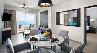 Suites feature a pool view. Additional amenities include direct access to a pool. Guests of the Platinum Club will receive a welcome fruit basket and a bottle of wine upon arrival, butler service, a pillow menu, an aromatherapy menu, late check-out (subject to availability), and access to a private lounge for internet access, newspapers, books, beverages and snacks, and reservations for the beach palapas.