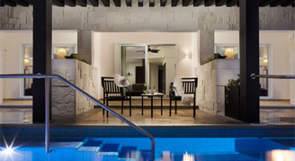 Suites feature a pool view.