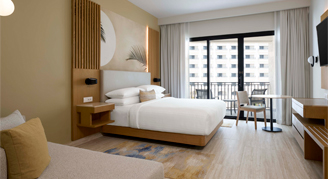 These rooms feature a view of the resort.