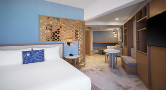 • Rooms and villas feature contemporary décor and modern amenities. Spacious three-bedroom villas are ideal for families or friends traveling together, and offer a kitchen, a living and dining area, and easy access to the resort's pools. Complimentary wireless internet access is offered throughout the resort.