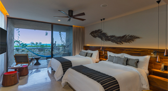 Rooms feature modern Mexican design elements, showcasing local Huanacaxtle wood and marble textures. All rooms include Artisan Butler Service, which offers an elevated level of personal assistance from assisting with check-in to making reservations.
