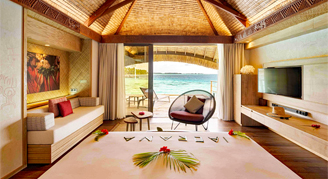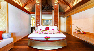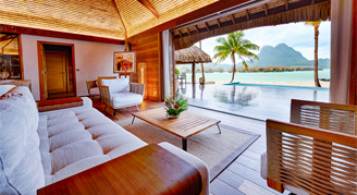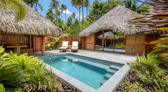 Suites are located in an enclosed garden and are designed after a traditional Polynesian home. Amenities include a wooden terrace, a sundeck with private plunge pool and gazebo. The tropical garden area is larger than the Beach Suites.