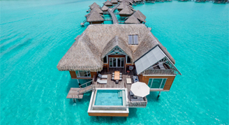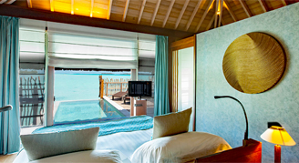 The Overwater Pool Villas offer views of the beach and feature a private outdoor pool.