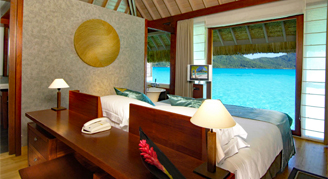Villas are located between the Beach-View and Bora Bora Island-View Villas, and feature a lagoon view toward the island of Bora Bora.
