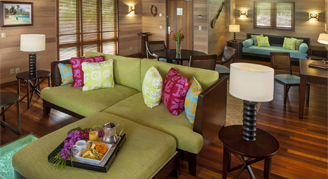 Villas are located on the sunset side of the resort and face Mt. Otemanu. Amenities include a private terrace and gazebo.