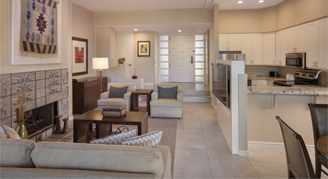 Enjoy resort-style living at its finest with a striking indoor and outdoor dining area, full kitchen, two bathrooms, vaulted ceiling and a gas fireplace, along with wine on demand by Plum.