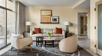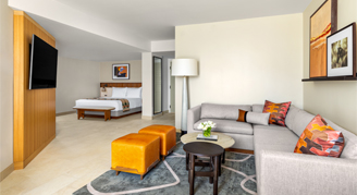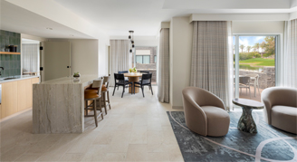 Experience the essence of this signature suite, a spacious living room, a refined dining area and a wet bar. A dining table for six makes it ideal for both intimate gatherings and elegant meals.