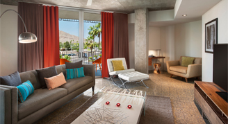 Treat yourself to a modern desert loft with mid-century touches. Enjoy a fully appointed kitchen, two-story living room and dining room area, a master bedroom, private balconies, and stunning views of Camelback Mountain.