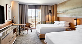 These spacious guest rooms include a private balcony or patio, living/sitting area, modern furnishings, JW luxury bedding and amenities, floor-to-ceiling windows and a Smart TV.