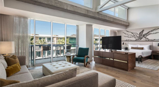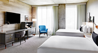 Rooms offer views of The Citizens Club Pool from a private 160-square-foot cabana patio, an open layout, floor-to-ceiling glass, in-room cocktail cart and coffee, and a built-in workspace. The classic design and neutral palette set the tone for a revitalizing stay.