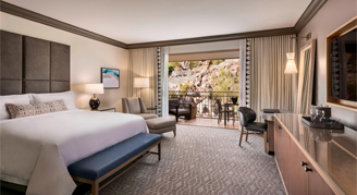These guestrooms feature mountain, garden or city views, imported Italian linen, signed original artwork and rich Berber carpeting. The oversized bathroom is decorated with Italian marble and has a separate bath and shower. Full-width sliding glass doors lead to a private terrace or balcony where you can enjoy your view of the resort’s dramatic surroundings.