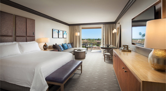 These guestrooms overlook the relaxing, shimmering pool or the resort. Spectacular views can be enjoyed both morning and night. Features include imported Italian linen, signed original artwork and rich Berber carpeting. The oversized bathroom is decorated with Italian marble and has a separate bath and shower. Full-width sliding glass doors lead to a private terrace or balcony where you can enjoy your view of the resort's dramatic surroundings.