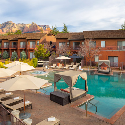 Located at the foot of vibrant Uptown Sedona, Amara Resort and Spa puts guests close to eclectic shops, lauded dining, and fine art galleries, all while feeling away from it all in a hidden retreat. Relax in a comfy lounge chair by the infinity-edge pool framed by spellbinding views of Sedona's Red Rocks or cozy up to one of the outdoor fire pits under the stars. Get pampered in the soothing on-property spa which features an extensive menu of treatment options. Enjoy a cocktail or modern cuisine on the expansive patio of SaltRock Kitchen, the signature restaurant, which showcases some of the best of local fare, customized with a creative spin.