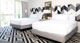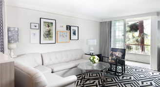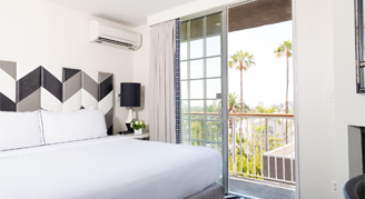The Chamberlain West Hollywood's 115 suites feature private balconies, separate living spaces and fireplaces. Stylishly designed by Perkins+Will, the sophisticated accommodations of this urban escape feature bathrooms with inspired marble and glass designs. The modern décor conveys a warm and welcoming West Hollywood vibe.