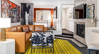 Located on the top floor, suites feature one king bed, a separate living area with a sofa bed and 55 inch HDTV, plus a kitchenette, Keurig coffee maker, fireplace and balcony.