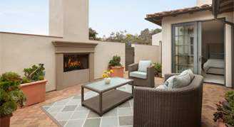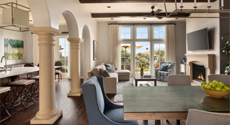 Villas feature two bedrooms; one king bed and one king bed in each, a separate living area, full kitchen, indoor and outdoor fireplaces, balconies in each room and partial views of the Pacific Ocean.
