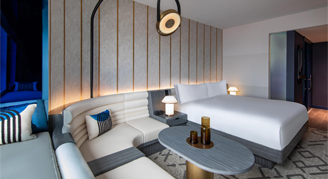 Wind down from an adventurous day in Los Angeles at W Hollywood. The 319 modern hotel rooms and suites boast sublime comfort in a prime location on Hollywood and Vine. Revel in the rich tones of the wood floors and fresh white linens accented with vibrant colors throughout each suite. The high-speed internet access and spacious work areas keep you connected to friends and coworkers back home. Inviting pillowtop mattresses and marble bathrooms will have you feeling refreshed after a night in one of the guest rooms.