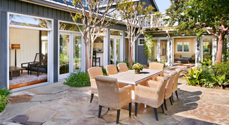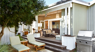 Experience Napa Valley living with three spacious bedrooms, a gated entry and a rooftop sundeck. The Three-Bedroom Courtyard Home features two master suites each with one king bed plus a third bedroom with one queen bed. In addition to the spacious suites, this home features a full kitchen with a dining room, an indoor/outdoor living room with fireplace, and a 1,400-square-foot courtyard with a dining table, Adirondack chairs, gas barbeque and gated entry with an additional gated carport.
