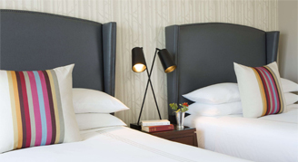 Rooms feature a marble bath, high-ceilings, and a private patio or balcony in select rooms.