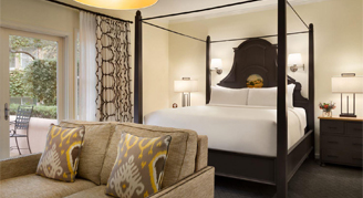 A charming European-style room captures the flavor of Wine Country lodging through a Provence-inspired decor, beautiful tile and marble baths featuring views of the garden, courtyard or surrounding neighborhood. Due to fire code restrictions, a rollaway bed is not permitted.