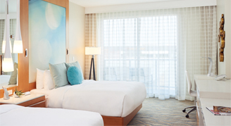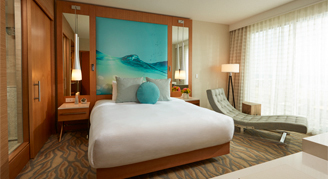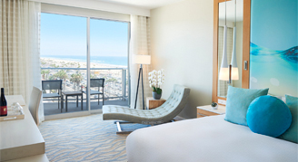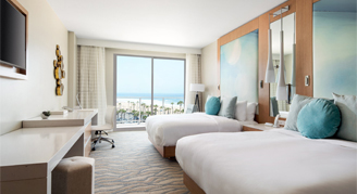Spacious and serene, the Ocean-View Studio offers stunning views of the Pacific Ocean and Huntington Beach pier from the private balcony. Bathed in sea and sand tones, these lovely studios offer a luxurious king bed with custom Frette® linens, intoxicating luxury Aarna Spa bath products, a Drinkworks Home Bar by Keurig, and exclusive hooded sweatshirt robes and flip-flops. A cozy sofa bed adds a bit of extra space for an even more comfortable stay.