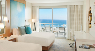 Relax on your private balcony and enjoy a breathtaking, unobstructed, 180-degree Pacific Ocean view. Enjoy your respite with luxurious beds with custom Frette® linens, intoxicating luxury Aarna Spa bath products, and exclusive hooded sweatshirt robes and flip-flops.