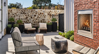 Located on the second level, rooms feature one king bed, an indoor fireplace, a bathroom with a walk-in shower, and a terrace with an outdoor fireplace and lounge seating.