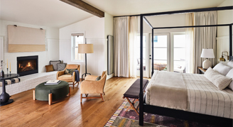 Canary Cottages are historic cottages that have been carefully restored to preserve their original details featuring exposed beams and warm wood floors. Cottages feature a covered front porch with a large rocker and two chairs; two separate bedrooms with a king bed and a suite bathroom including a walk-in shower and separate clawfoot soaking tub in each; a living room with a loveseat, two chairs, fireplace and wet bar; and patio with a loveseat, lounge chairs, firepit and bistro table with seating for four.