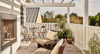 Courtyard Suites are new buildings designed with the fundamental characteristics that reflect Mattei’s original structures. Suites feature a master bedroom with a king bed, seating area, and master bathroom with a walk-in shower and separate clawfoot soaking tub; second bedroom with two double beds, bench seating area, and second bathroom with a walk-in shower; living room with a wet bar, sofa, indoor fireplace and dining table with built-in bench seating; and a patio with a loveseat, lounge chairs, firepit, private jacuzzi and chaise lounge seating.