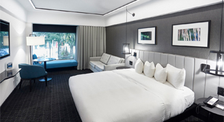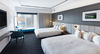 Hôtel Bonaventure Montréal has 397 spacious rooms and suites each offering unsurpassed comfort. Proposing an exceptional view of downtown Montreal or on the 2.5 acres of the hotel's landscaped gardens, each room ensures an unforgettable experience during your stay. All rooms and suites provide a smoke-free environment. These also feature a work desk as well as a spacious bathroom, a safe and several amenities that offer comfort and simplicity at its best. Enjoy the year-round heated outdoor pool, hot tub, dry sauna, fitness room and unlimited internet access during your stay. Accessible rooms featuring roll-in showers and handlebars for guests with reduced mobility are also available.