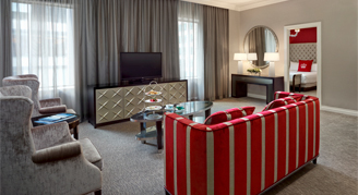 The Deluxe Suite features a large separate living area and a luxurious contemporary washroom. Stylish room décor pays homage to a proud history as Toronto’s first luxury hotel. It also includes a large HDTV, large working desk, WiFi, Keurig coffee machine, laptop-size safes, premium bedding and bathroom amenities. Suites are located throughout the hotel.