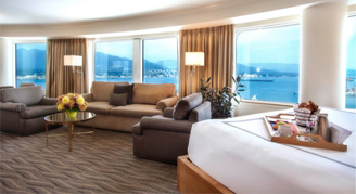 These rooms boast breathtaking views of the Vancouver Harbour, Stanley Park and North Shore Mountains.