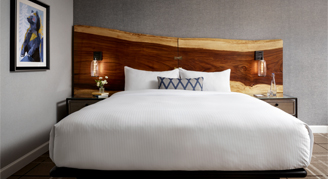 An intimate abode perfect for couples, the elegantly designed space boasts a luxurious King bed, fireplace, and modern bathroom with spa shower. Situated on the higher floors of the hotel, the aptly named Alpine Suites offer breathtaking views of the surrounding mountain peaks.