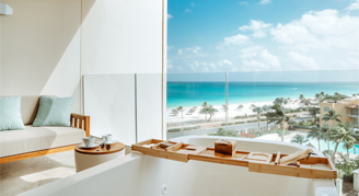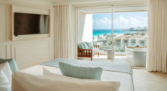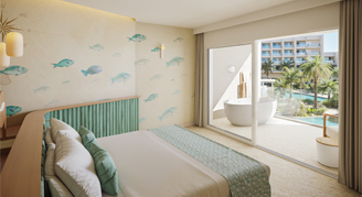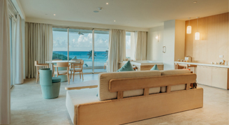 These spacious suites come with butler service to elevate your stay. Suites feature a full ocean view, king-size bed, whirlpool bath inside the room, large corner balcony, a separate living room with plenty of space for your comfort, mini-bar for a fee, and robes and slippers.