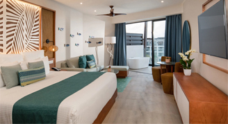 Dreams® Macao Beach Punta Cana - All-Inclusive offers 500 guest rooms and suites with beautiful views and spacious quarters. Families can be steps away from the water park, lazy river, Explorer's Club for Kids and Core Zone Teens Club. Or try a suite, with beautiful views of the garden, pool or ocean and easy access to our gourmet restaurants and bars. Each room is equipped with the all-inclusive amenities of Unlimited-Luxury®. Calming neutral tones are accented by deep teals and blues with hints of the tropical island throughout.