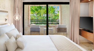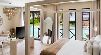 Rooms feature a Garden or Ocean view and are located in the Castle section. Includes a king bed, full bathroom, furnished living room and terrace. Includes butler service.