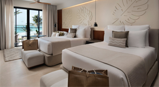 Located on the ground floor of the Preferred Club buildings with direct pool access, these oceanfront suites feature a rain shower, full-length mirror, beauty station, double vanities, and an ample closet area.