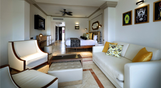 Rooms feature a view of the ocean, a bedroom and separate living room.