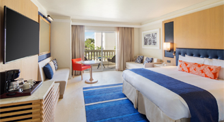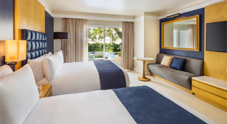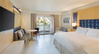 Suites feature a view of the resort pool or garden and a private balcony or terrace.