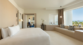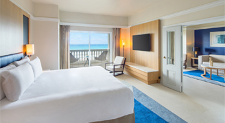 Suites feature an ocean view, separate living room and a private balcony or terrace.