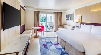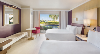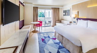Rooms feature a view of the resort pool or garden and a private balcony or terrace.