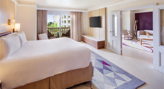 Rooms feature direct access to a semi-private pool with a bedroom and separate living area. All guests in this room must be 13 years or older.