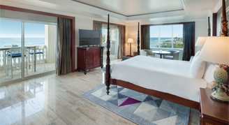 Presidential suite features an ocean view, separate living and dining area, walk-in closet and a private balcony or terrace. Presidential suite amenities include: exclusive butler service, personalized concierge services and access to a selection of premium spirits at the Stirz Lobby Bar.