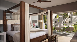 Suites are located in the Blue Mountain or Bamboo building, and feature a view of the ocean. Additional amenities include direct access to a private pool from the terrace.